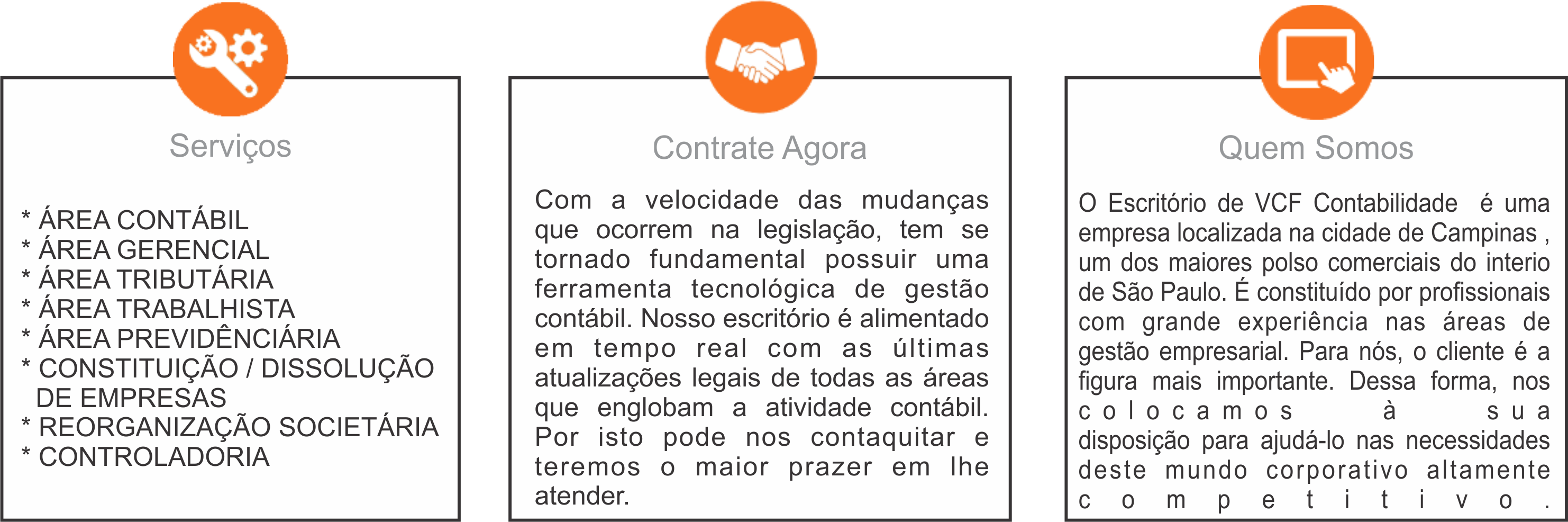 EQUIPE ESPECIALIZADA: A equipe do escritório VCF Contabilidade é formada por profissionais com elevado nível de capacitação, no tocante a realização das funções exigidas em nosso ramo, e é composta por colaboradores formados em curso superior na área contábil, todos imbuídos de um elevado senso de responsabilidade além do alto preparo para o exercício de suas atribuições.